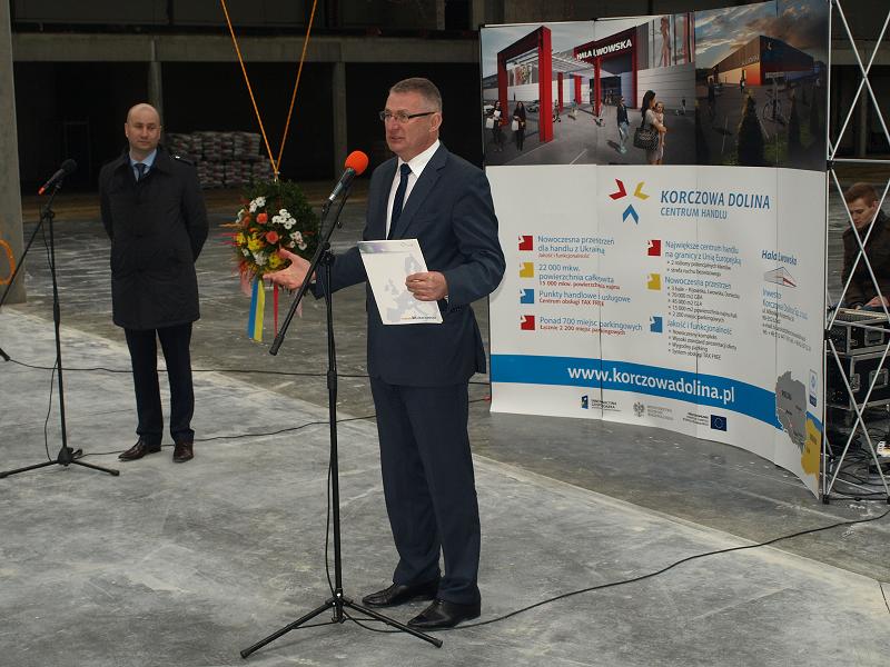 11 kwietnia br. w Hali Lwowskiej w Korczowej uczestniczyłem w uroczystości związanej z zakończeniem I etapu inwestycji Centrum Handlu Korczowa Dolina. Niezmiernie cieszy fakt, iż w naszym regionie powstają ciągle nowe inwestycje, które przyczyniają się do intensywnego rozwoju Podkarpacia. Centrum Handlu Korczowa Dolina to największy tego typu obiekt handlowy położony w miejscowości Młyny w gminie Radymno w odległości 2 km od granicy z Ukrainą, przy wschodniej granicy Unii Europejskiej w strefie ruchu bezwizowego. Projekt współfinansowany jest przez Unię Europejską z Europejskiego Funduszu Rozwoju Regionalnego. W przestronnym kompleksie o łącznej powierzchni najmu 45 tyś. km docelowo funkcjonować będą trzy hale: Kijowska, Lwowska i Doniecka. Inwestorom oraz wykonawcom pogratulowałem kolejnej, udanej inwestycji.