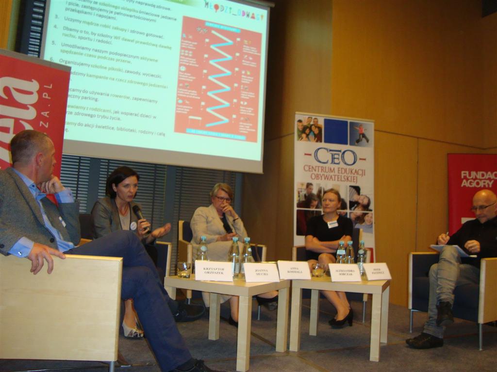 Młodzi odwagi - pod takim właśnie hasłem trwa ogólnopolska akcja Gazety Wyborczej i Centrum Edukacji Obywatelskiej. W dniu 5 czerwca, w siedzibie Gazety Wyborczej, odbyło się spotkanie podsumowujące pierwszą edycję programu. W trakcie debaty zastanawialiśmy się nad prawnymi rozwiązaniami dotyczącymi zakazu sprzedaży w sklepikach szkolnych żywności i napojów zawierających nadmiar soli, kwasów tłuszczowych, cukrów prostych, sodu czyli m.in.: żelków, chipsów, batoników, gazowanych napojów oraz zastąpienie ich owocami, warzywami, naturalnymi sokami i wodą mineralną. Zmianom żywieniowym powinny towarzyszyć również te dotyczące aktywności fizycznej w szkole.W trakcie dyskusji dzieliłem się z zebranymi swoimi doświadczeniami zawodowymi. Jak przystało na konferencje o takiej właśnie tematyce, podczas jej trwania uczestnicy w praktyce mogli zaspokoić swoja potrzebę ruchu. Fotorelacja pod adresem: http://wyborcza.pl/mlodziodwagi/51,128591,14046443.html?i=1