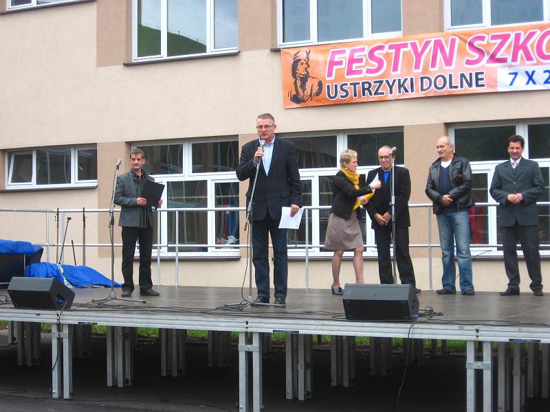 7 października uczestniczyłem w Festynie Szkolnym „2”, zorganizowanym przez Dyrekcję, Radę Pedagogiczną i Radę Rodziców Zespołu Szkół nr 2 w Ustrzykach Dolnych. Festyn zorganizowany został w celu pozyskania funduszy na zakup sprzętu multimedialnego (projektory, laptopy, tablica interaktywna), który umożliwiłby w lepszym stopniu rozwijać wśród uczniów wymagane umiejętności Technologii Informacyjno-Telekomunikacyjnej. Praca z wykorzystaniem TIK zapewnia rozwijanie kreatywności, umiejętności współpracy i krytycznego myślenia uczniów, a także pozwala im na sprawne wyszukiwanie oraz twórcze wykorzystywanie dostępnych źródeł wiedzy. Wcielając w praktyczne działania jedną z myśli przewodnich tej szkoły „geniusz oznacza nieskończoną zdolność pokonywania trudności”, organizatorzy nie poddali się strugom deszczu oraz niekorzystnej aurze i zorganizowali przednią zabawę w hali sportowej i na korytarzach szkolnych. Podczas festynu nie zabrakło różnego rodzju atrakcji, a przygotowane przez organizatorów zabawy zachęcały mieszkańców Ustrzyk do spędzenia wolnego czasu w sposób czynny. Przez całe niedzielne popołudnie w budynku szkoły bawiły się całe, niejednokrotnie wielopokoleniowe rodziny. Będąc razem z nimi mogłem przekazać całej społeczności szkoły wyrazy uznania za pozadydaktyczną działalność.Przekazałem również, ufundowane przeze mnie, nagrody dla zwycięzców konkursu dotyczącego bezpieczeństwa ruchu drogowego.