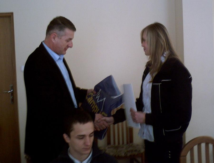 W dowód uznania za osiągane wyniki przez sportowców prezesowi UKS "5" Panu mgr Krzysztofowi Sugierowi wręczyłem sprzęt sportowy, a laureatce XXXV Plebiscytu na 10 Najlepszych - Najpopularniejszych Sportowców Czytelników „Życia Podkarpackiego” w 2009 roku Weronice Wyka upominek rzeczowy. Życzę wielu sukcesów w kolejnych zawodach sportowych!