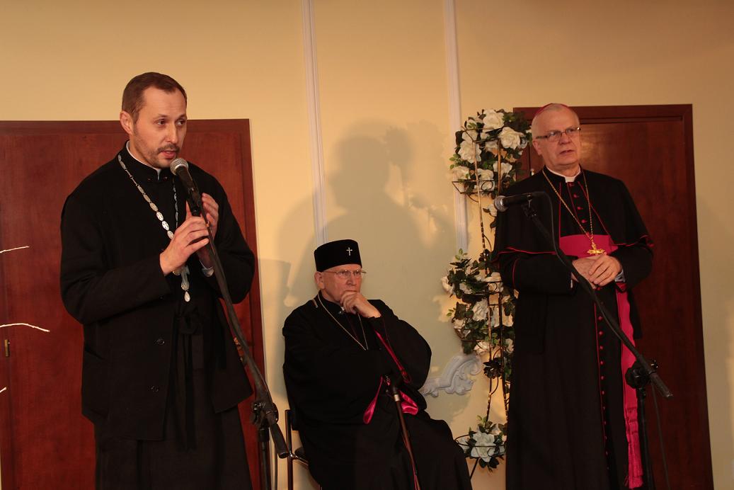 5 stycznia br. uczestniczyłem w XVII Galicyjskim Salonie Sukcesu połączonym z Opłatkiem Wielokulturowym. Gośćmi specjalnymi salonu byli Pan Grzegorz Schetyna, Przewodniczący Sejmowej Komisji Spraw Zagranicznych oraz Pan Wojciech Inglot, Prezes Zarządu Firmy Kosmetycznej Inglot Cosmetics, laureat nagrody Polskiej Rady Biznesu im. Jana Wejcherta. Organizatorzy salonu - Kapituła Galicyjskiego Salonu Sukcesu - zapewnili jak zawsze nie tylko znamienitych gości, ale także doskonałą oprawę artystyczną jaką stanowił:Zespół kameralny Opery Lwowskiej w osobach solistów Lubowa Kaczała i Petro Radejko, Chór MAGNIFIKAT, Chór im. Mychajła Werbyckoho oraz Grupa INES. W drugiej części spotkania odbył się Opłatek Wielokulturowy celebrowany przez Jego Ekscelencję ks. Arcybiskup Józefa Michalika Metropolitę Przemyskiego obrządku Rzymskokatolickiego, Jego Ekscelencję ks. Arcybiskupa Jana Martyniaka Metropolitę Przemysko-Warszawskiego Kościoła Grekokatolickiego oraz Jego Ekscelencję Najprzewielebniejszego Paisjusza Biskupa Gorlickiego Autokefalicznego Kościoła Prawosławnego w Polsce. Po celebracji wszyscy uczestnicy mieli okazję złożyć sobie życzenia bożonarodzeniowe i noworoczne, podzielić się opłatkiem i prosforą w duchu zażegnania wszelkich sporów i waśni, pojednania i przebaczenia.